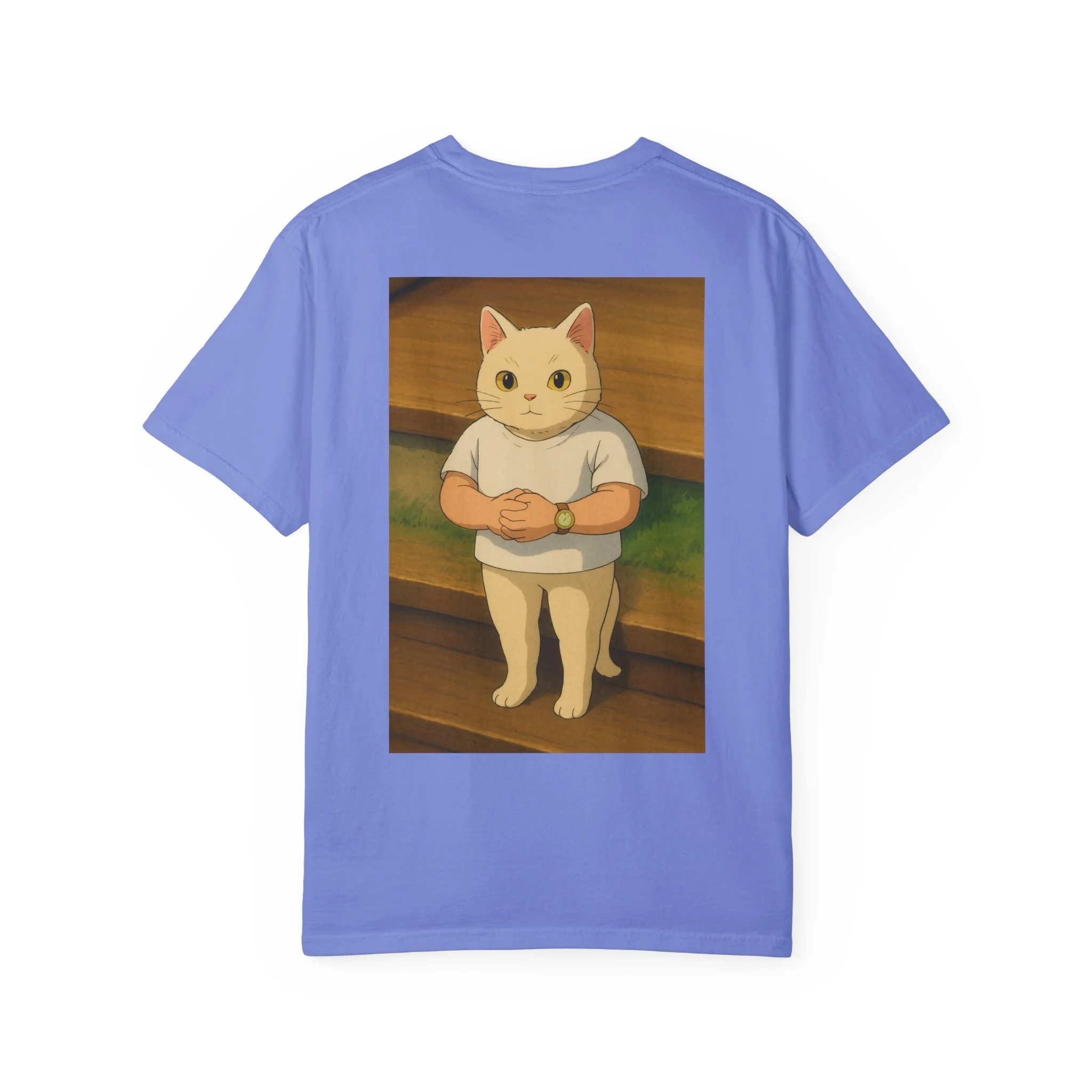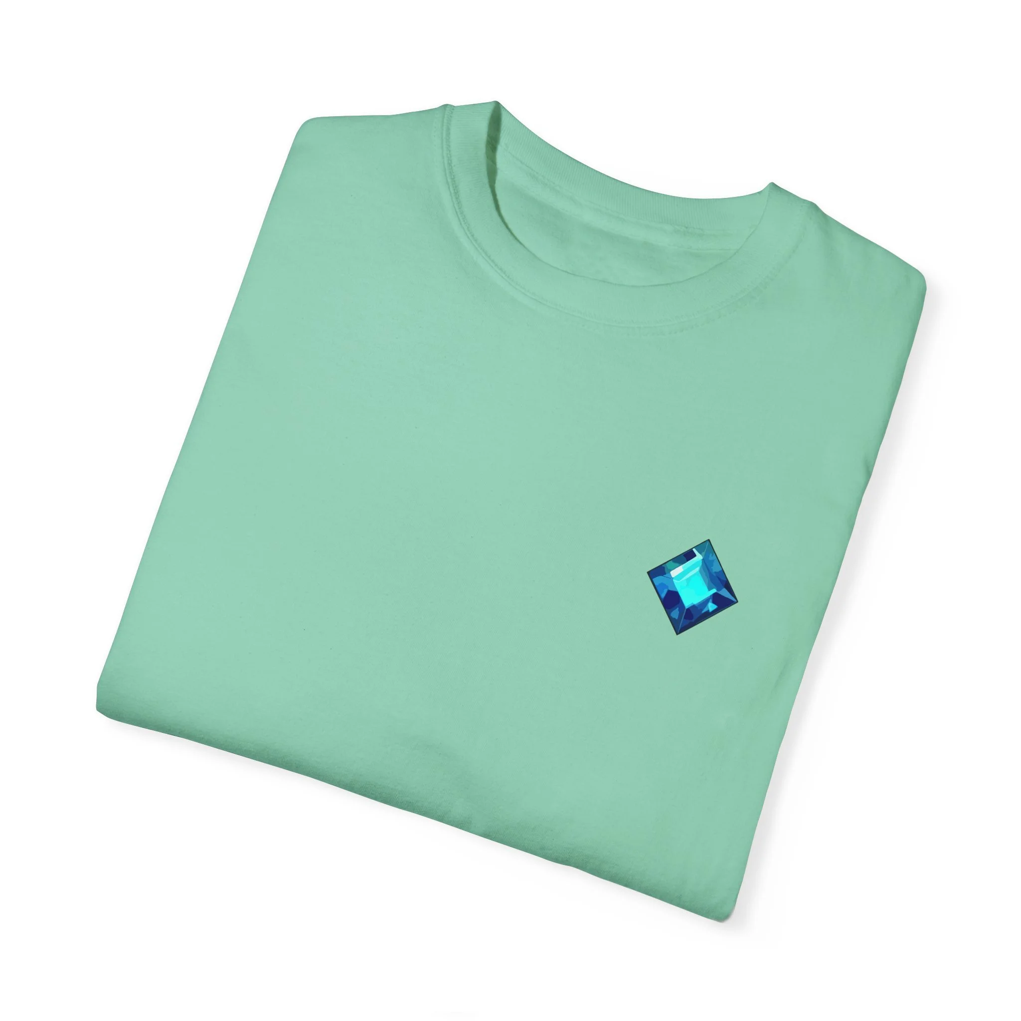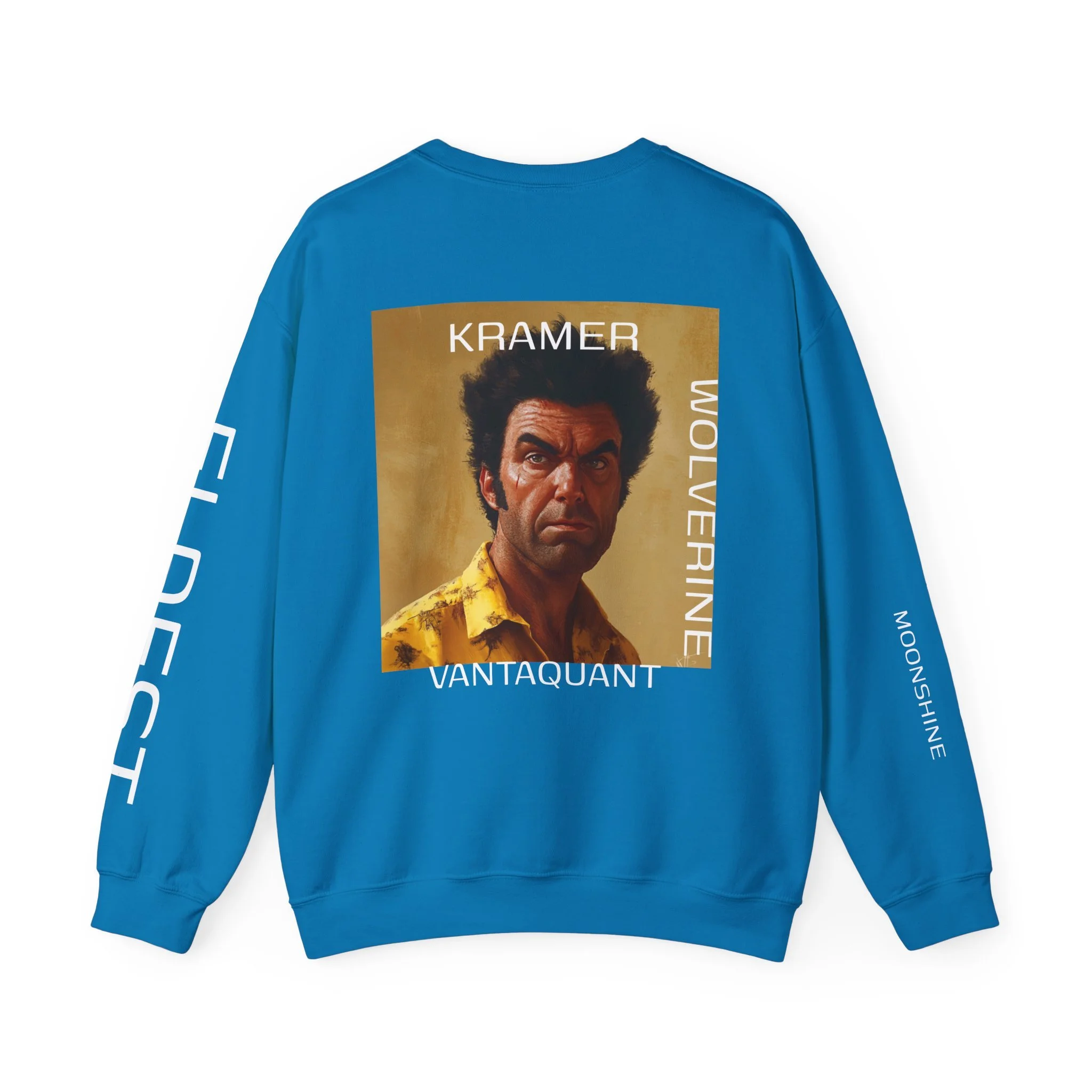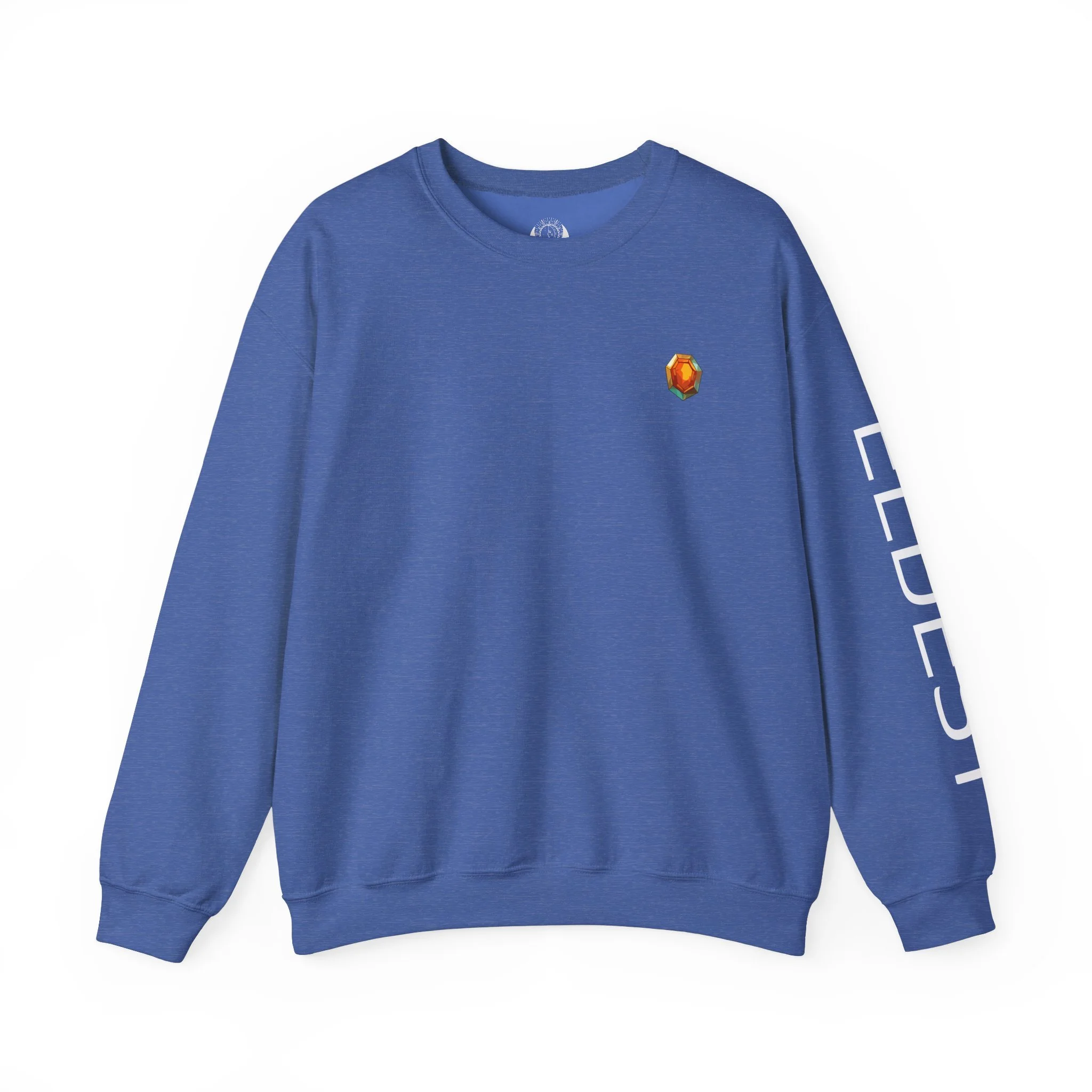 Pixel art character with a blue and white outfit and large hat.