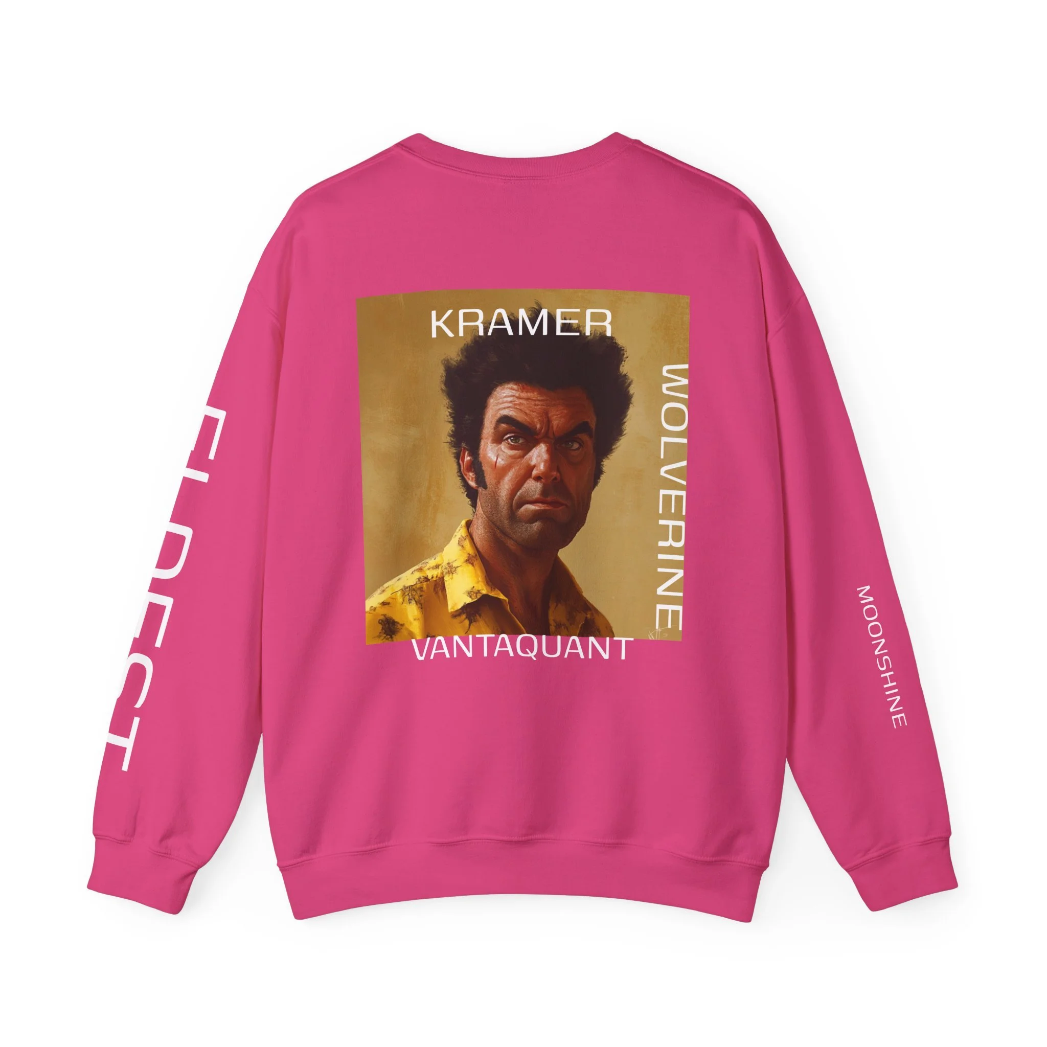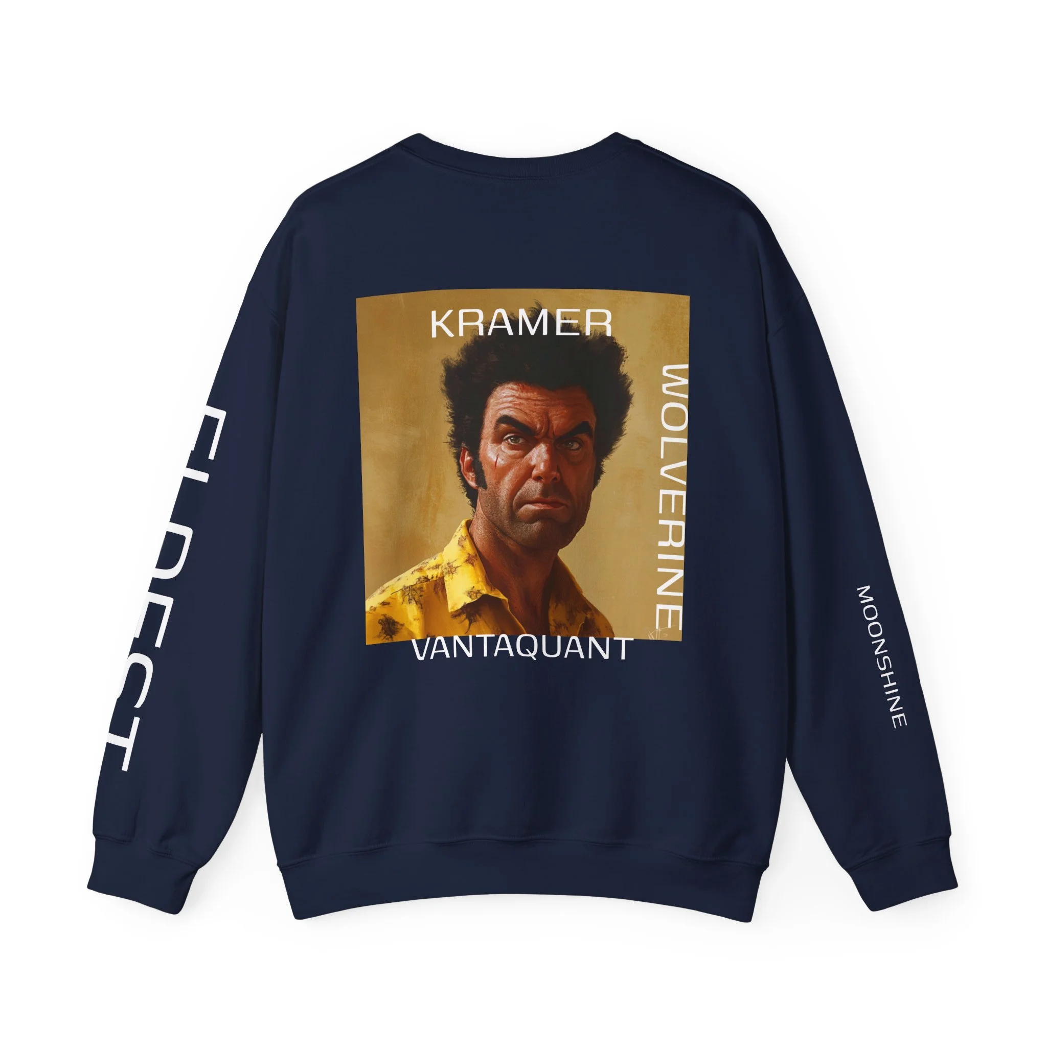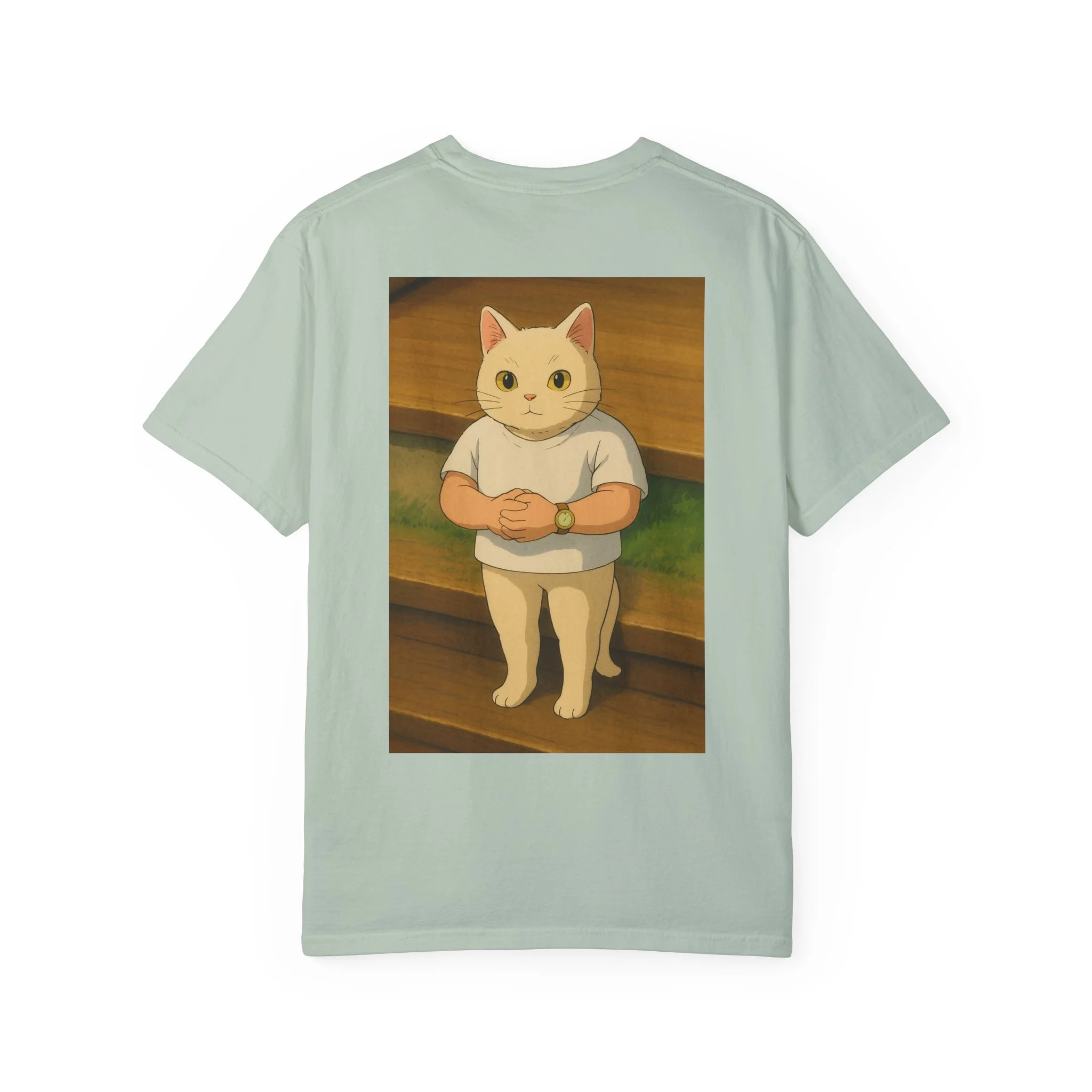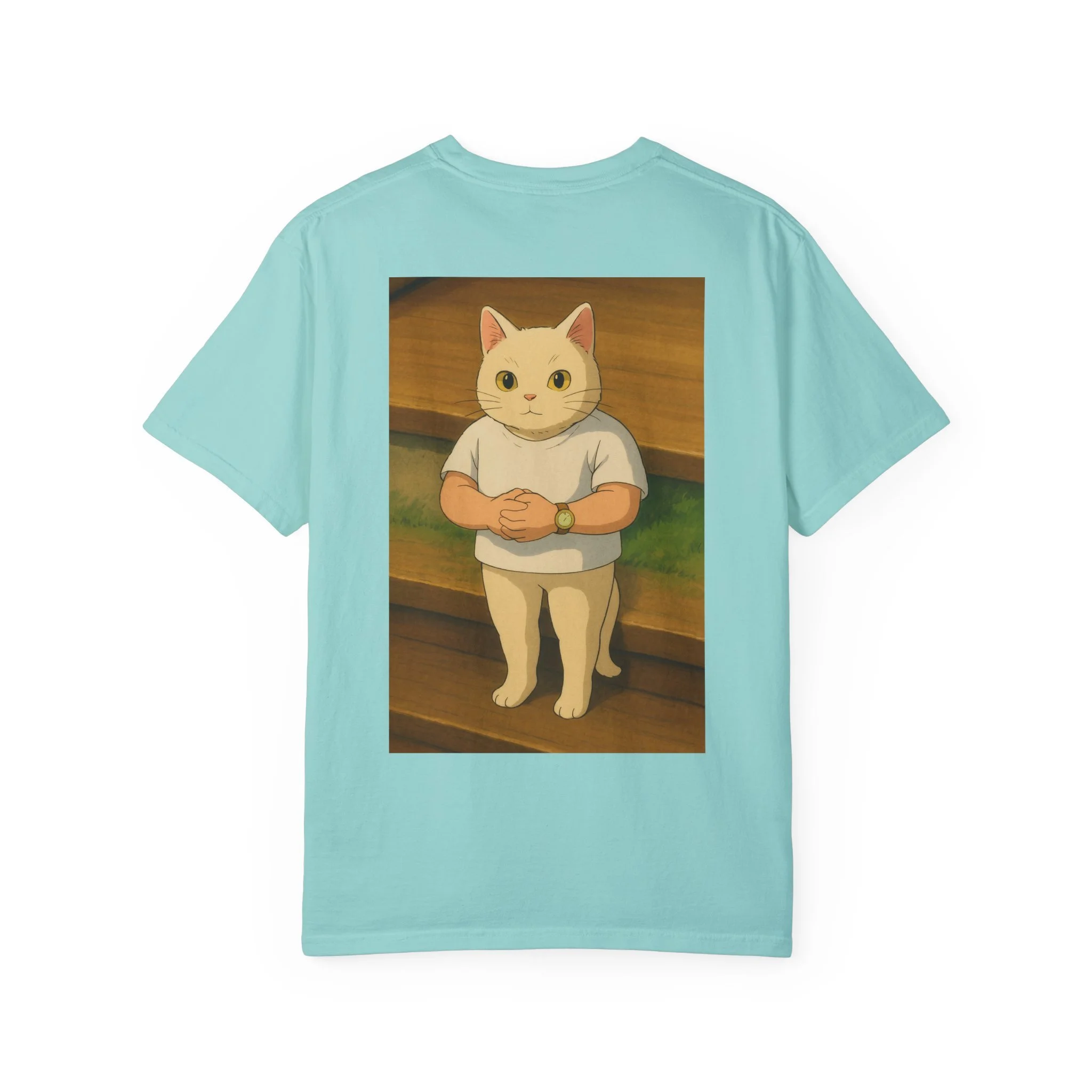 Pixel art character with a blue and white outfit and large hat.